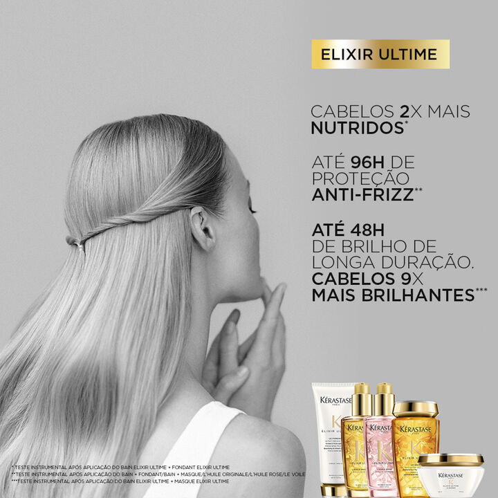 A Elixir Ultime Le Masque é uma máscara de nutrição para cabelos que promove um tratamento restaurador para cabelos opacos devolvendo o brilho e vitalidade para os fios. Desenvolvida para todos os tipos de cabelos, esta máscara penetra nos fios, tratando e restaurando-os para alcançar um brilho suave e sedoso. Os benefícios desta máscara são potencializados pelas Vitaminas C e D, juntamente com o Ômega 9, presentes no Óleo de Marula Sagrada. Esses ingredientes da fórmula trabalham em conjunto para fortalecer a fibra capilar, em uma máscara com Óleo de Argan, Óleo de Marula e Óleo de Camélia, proporcionando não apenas brilho, mas também nutrição intensa aos cabelos.